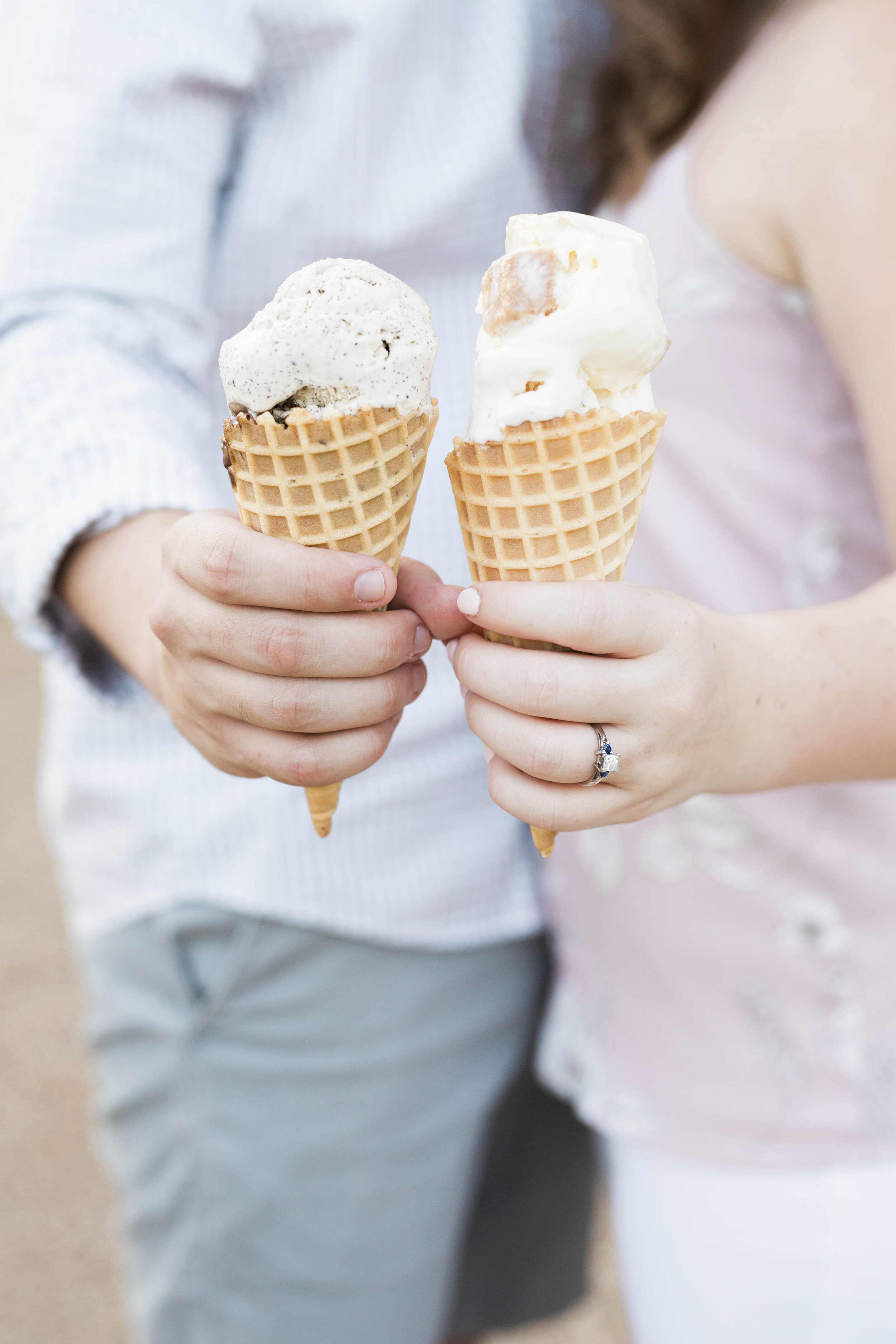 Meet Gabby and Nick! We started their engagement session at Lafayette Square in St. Louis, which is a beautiful setting for any occasion. Plus, the summer colors within the park, complimented their wardrobe perfectly! We ended the session around the corner at Clementine’s Creamery with a few different scoops of the most BOMB ice cream.