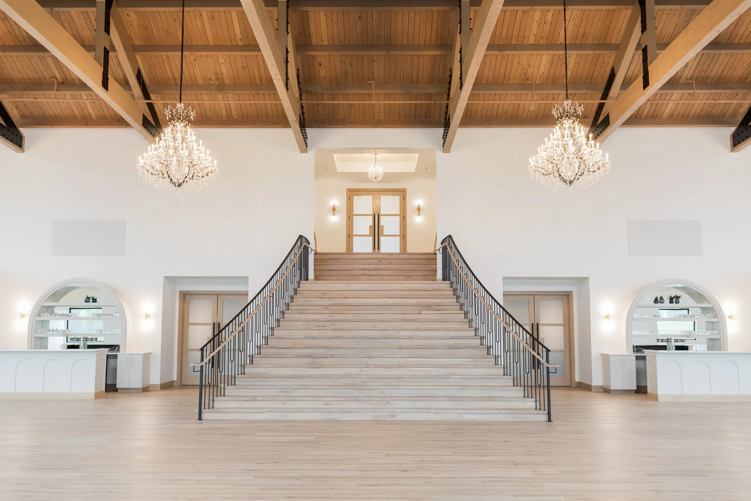 Nestled in the woods, this French-inspired chateau provides a warm and romantic atmosphere all year long. With its towering stone fireplace, wood-beamed ceilings, and panoramic windows, Silver Oaks is a favorite for couples who want that elevated rustic feel without compromising on elegance. Winter weddings here feel like a cozy escape.
