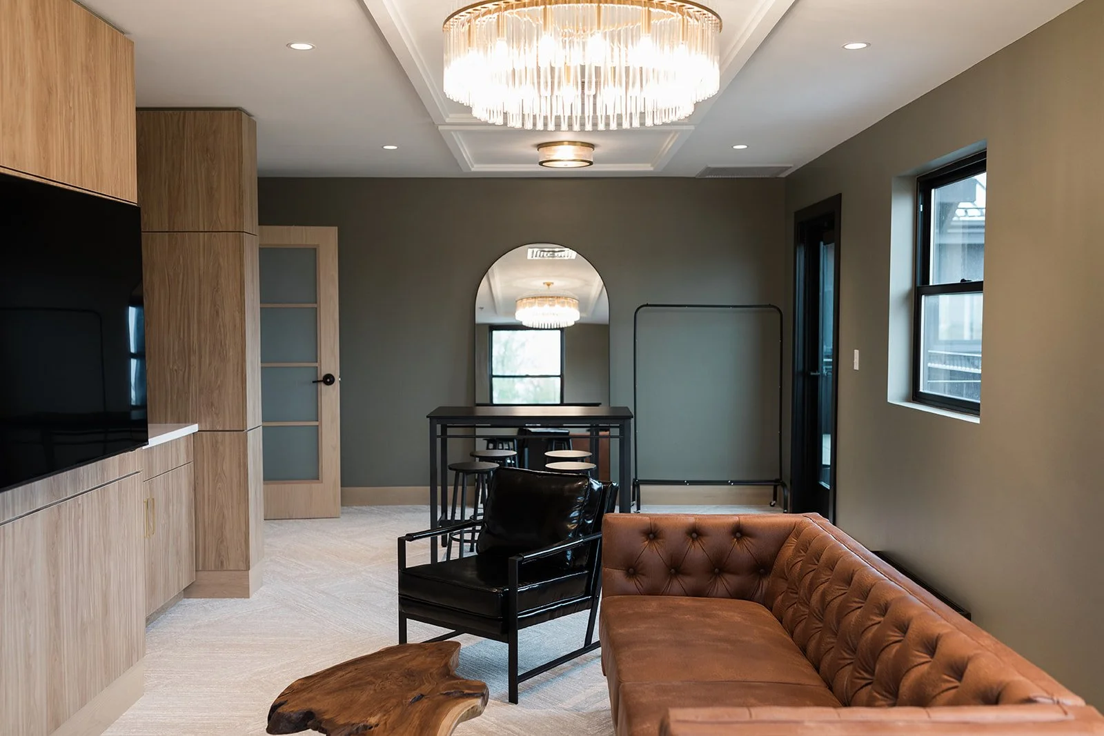 Designed with a speakeasy vibe, this level features copper-toned wallpaper, darker finishes, and an intimate atmosphere. It’s perfect for cocktail hour, smaller events, or giving your guests an unexpected surprise space during the day.
